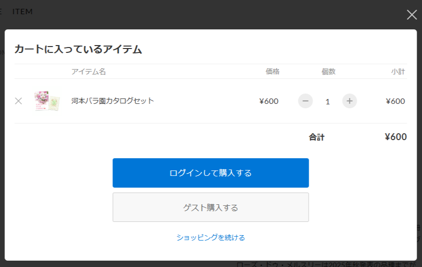 さて、今まで、切手を郵送していただくことで弊社河本バラ園のカタログと、ローズ・ドゥ・メルスリーのカタログセットを送らせていただいていましたが、この度、お手持ちのスマートフォンやパソコンから電子決済での注文ができるようになりました。4月27日(月)より受け付け致します。
