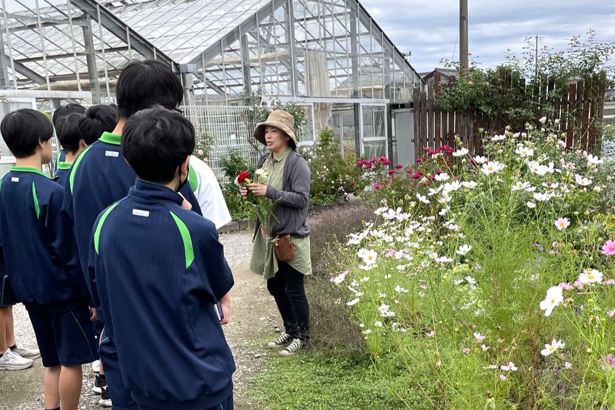 先日、大野中学校の生徒さんが授業の一環で、河本バラ園の見学に来てくださいました。