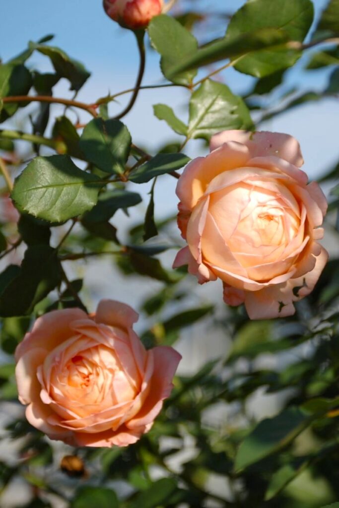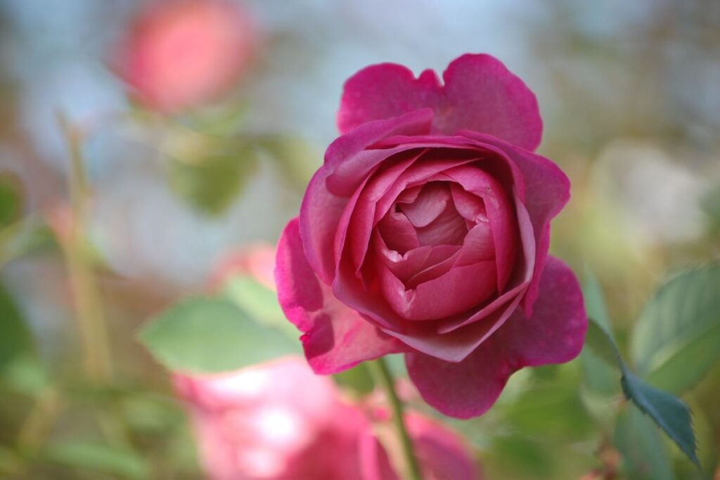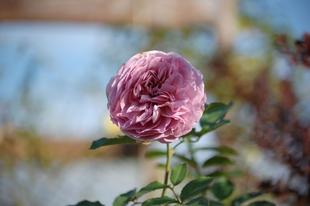 今朝のお庭は陽が差しており、今も咲いている秋バラが太陽の光を受けてきれいでしたのでご紹介します。