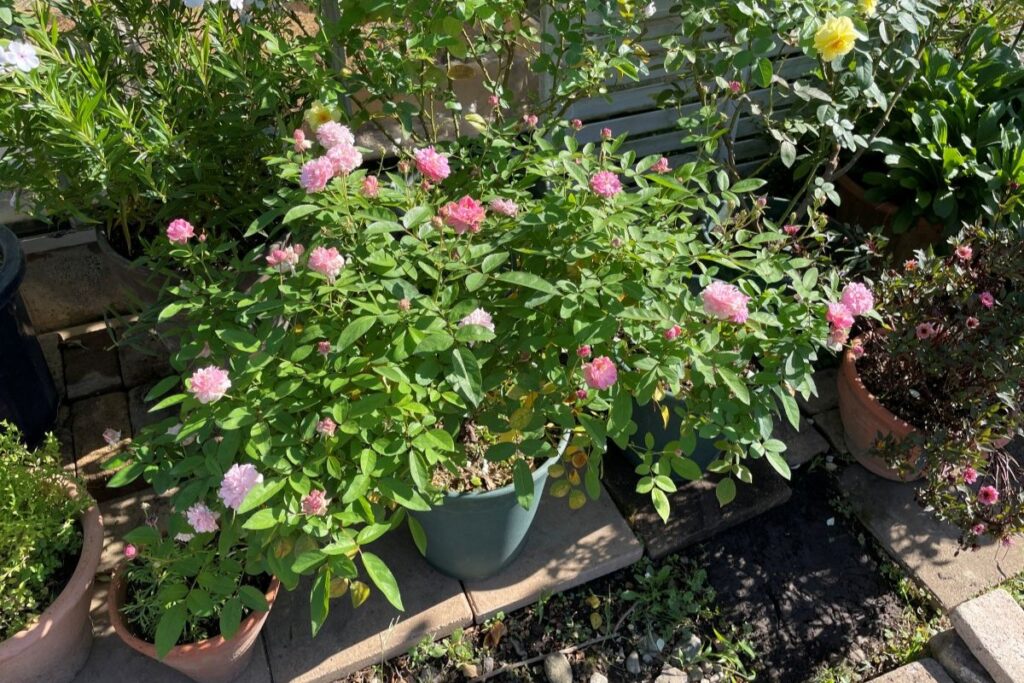 よくよく探すと茂みの中にローズ・ドゥ・メルスリーのタフタが咲いていたり、鉢植えのこんぺいとうもかわいく咲いていました。